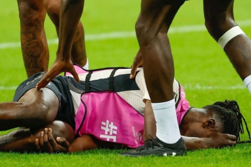 El entrenamiento transcurría de forma normal hasta que en una jugada se vio como su pie se quedo fijado al pasto además de un ligero contacto con Tchouameni y después Eduardo Camavinga gritó dejando a todos preocupados.