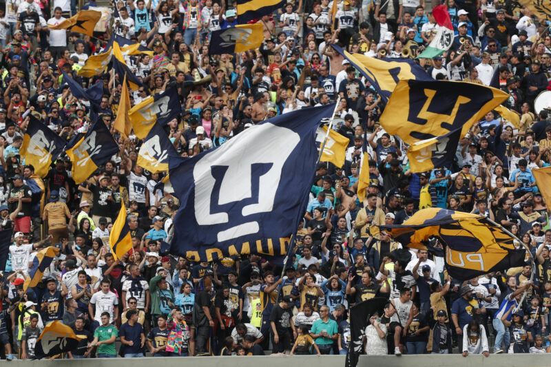 Aficionados de los Pumas fueron registrados este domingo, 21 de julio, al animar a su equipo ante Pachuca, durante un partido de la jornada cuatro del Torneo Apertura del fútbol en México, en el estadio Olímpico Universitario de Ciudad de México. EFE/Isaac Esquivel